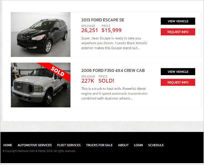 Adamson Automotive is an automotive service and repair shop providing quality vehicle maintenance and repair services. Their web design features online appointment booking, service listings, and customer testimonials.