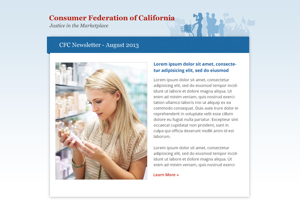 The Consumer Federation of California advocates for "Justice in the Marketplace," protecting consumer rights across the state. The