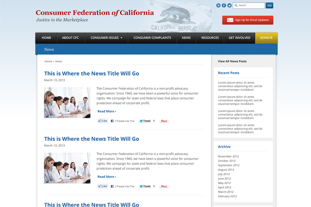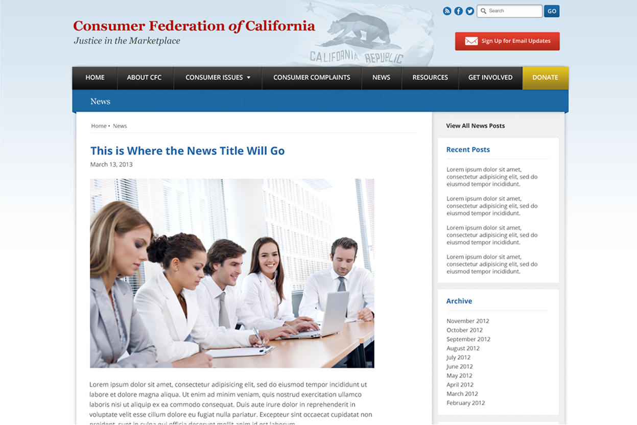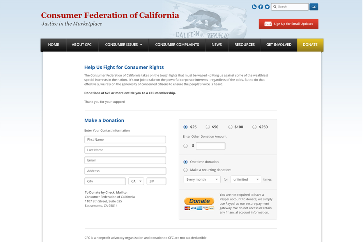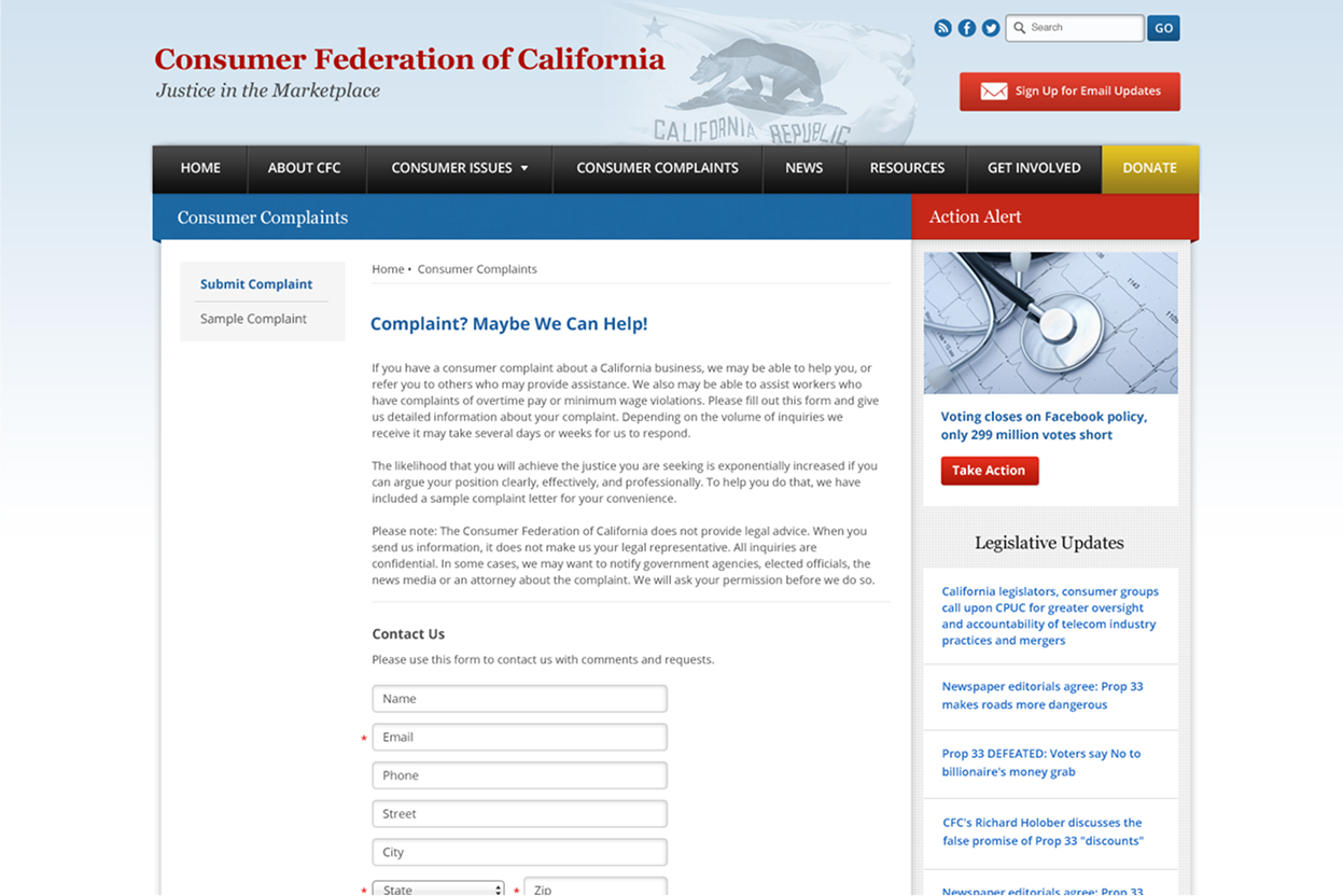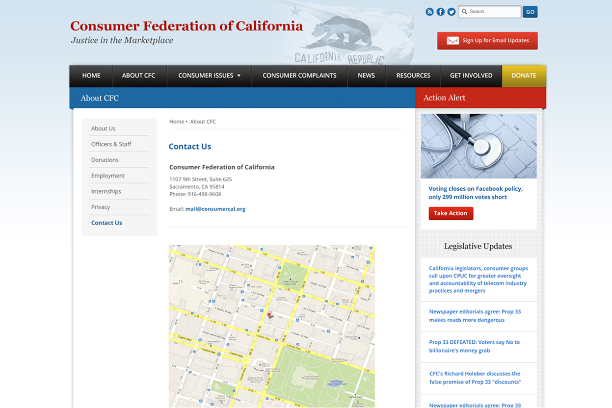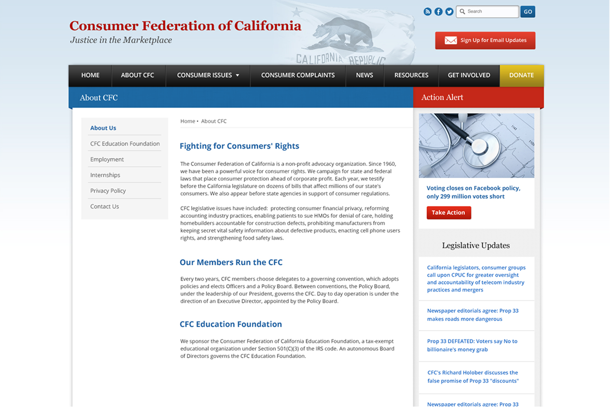 web design provides legislative updates, consumer resources, and advocacy information for California residents.