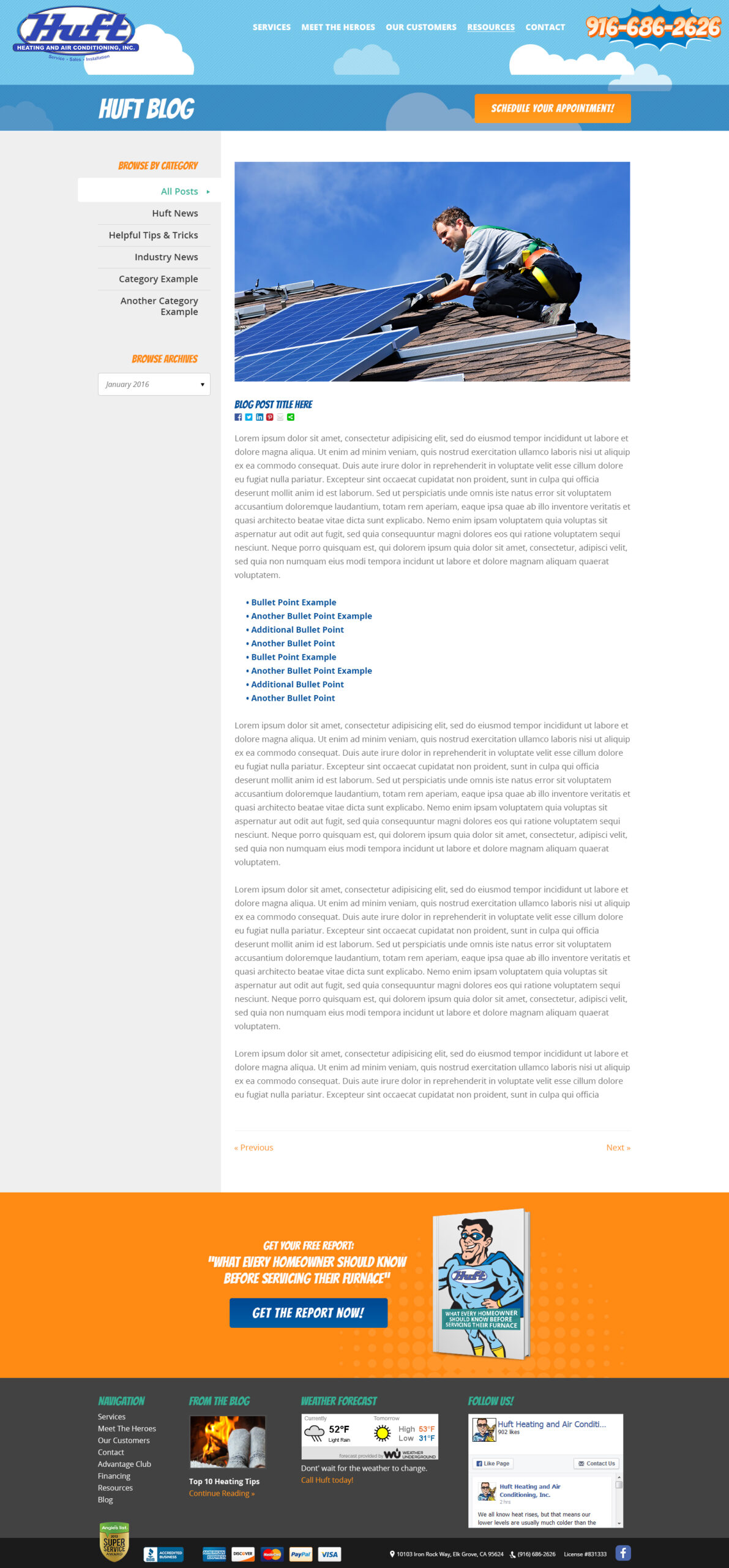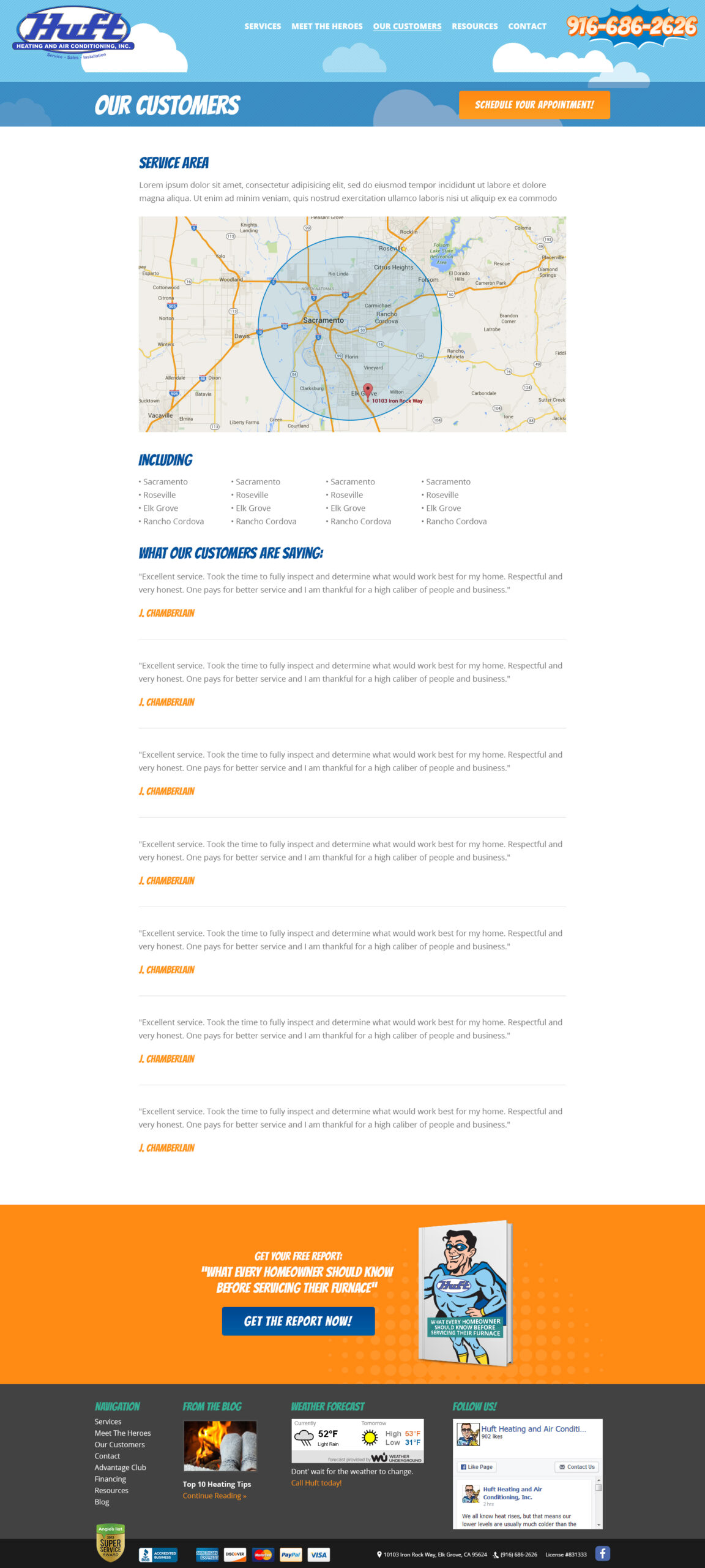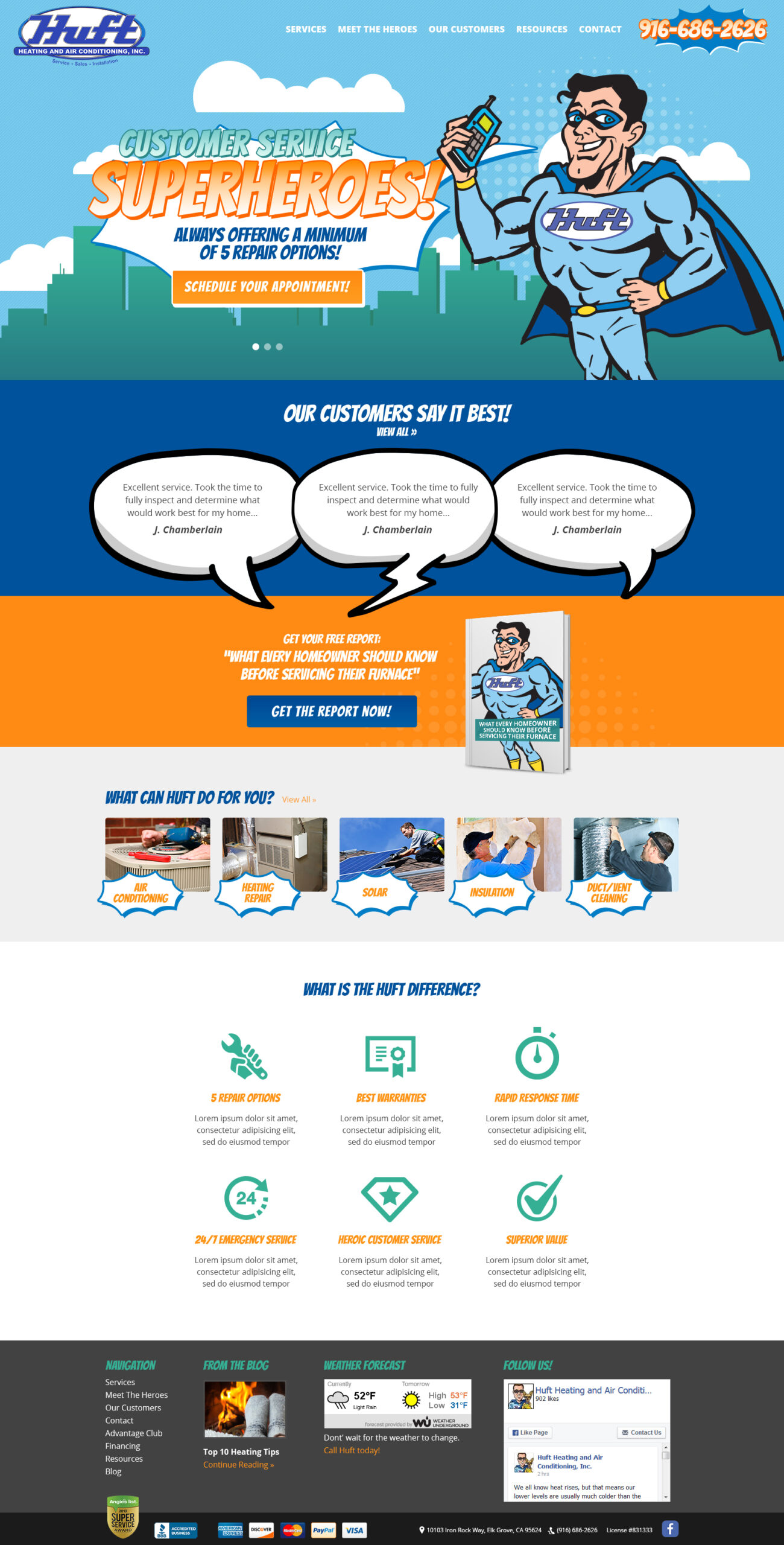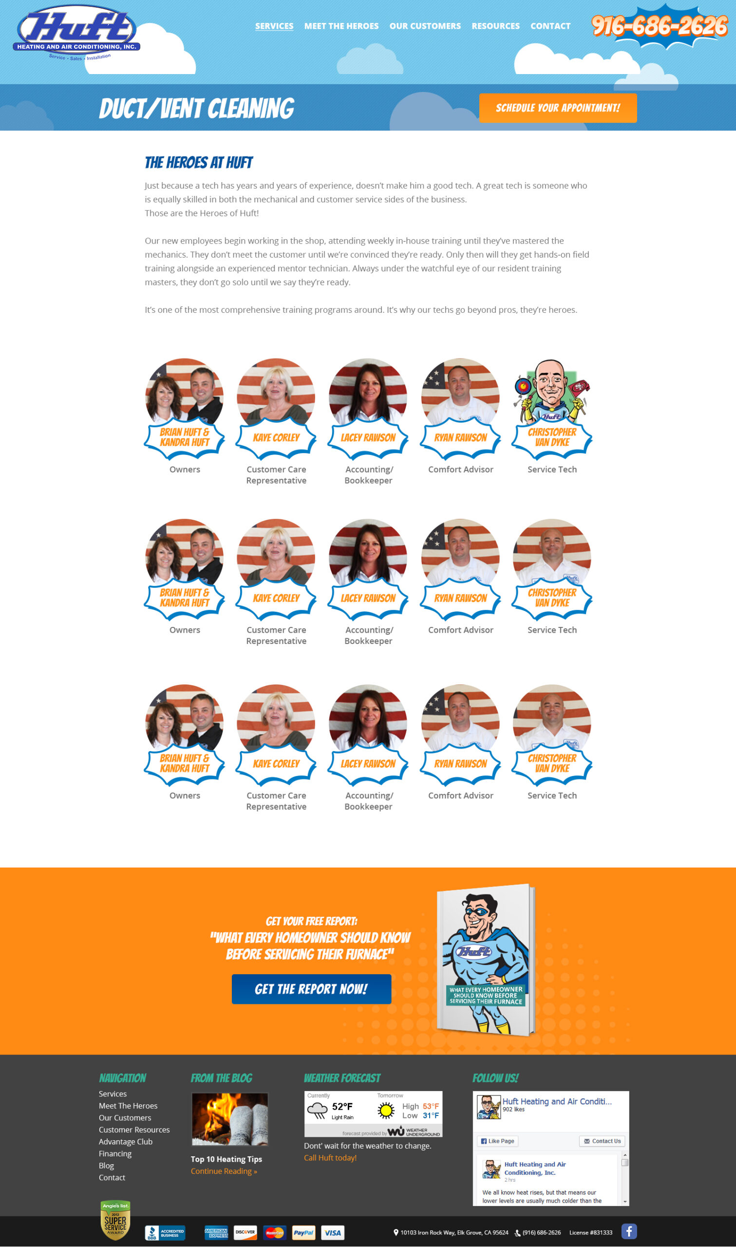 Huft Heating & Air Conditioning provides comprehensive heating, cooling, and indoor air quality services. Their web design features online scheduling, service information, and maintenance plan options for residential comfort solutions.